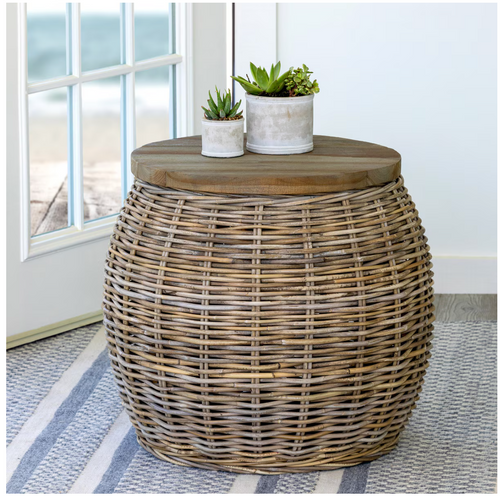 Rattan Side Table with Wood Top
