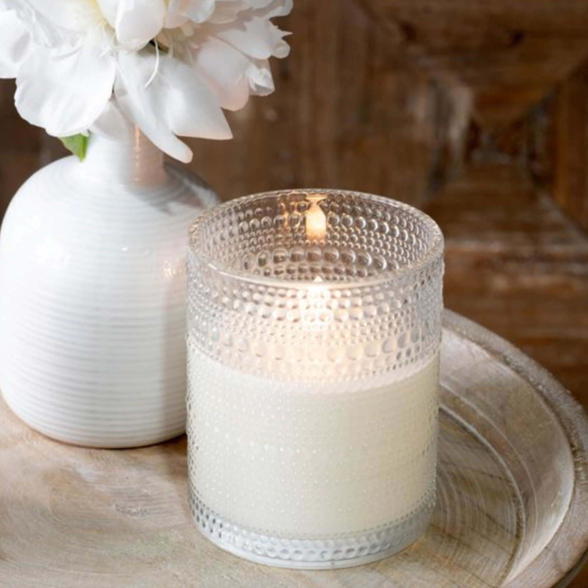 This elegant LED candle features a beaded glass design, combining classic charm with modern illumination. Available in red or clear.